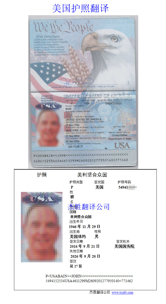 • 美國護照翻譯